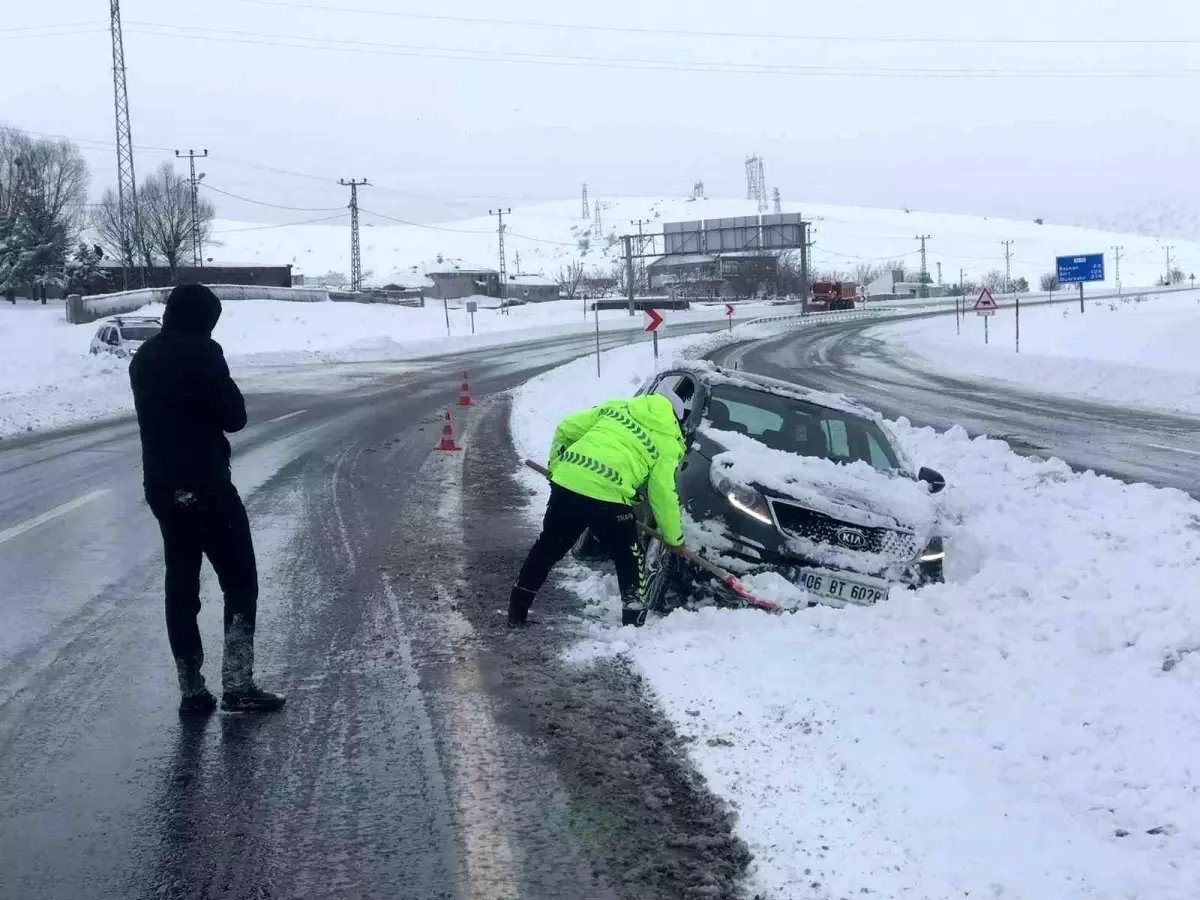 Bitlis'te yoğun kar yağışı sebebiyle karla kaplanan ve buzlanmanın etkili olduğu güzergahlarda ilerlemekte zorlanan araçlar kara saplandı. İl Emniyet Müdürlüğü'ne bağlı Trafik Tescil Şube Müdürlüğü ekipleri, kara saplanan otomobillerin önündeki karları, kar kürekleri ile temizledikten sonra çıkarttı. Araç sürücüleri, kendilerine yardımcı olan polis ekiplerine teşekkür ederken yetkililer, sürücülerin kış şartlarına uygun lastik kullanmaları, hızlarını düşürmeleri ve trafik kurallarına uymaları konusunda uyarılarda bulundu. - BİTLİS